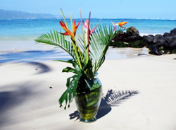 You may cut and trim any stem to give it some variety in length and play with the foliage...there is really nothing that you can do wrong! Each tropical flower stem is beautiful itself and it does not require any special skills.